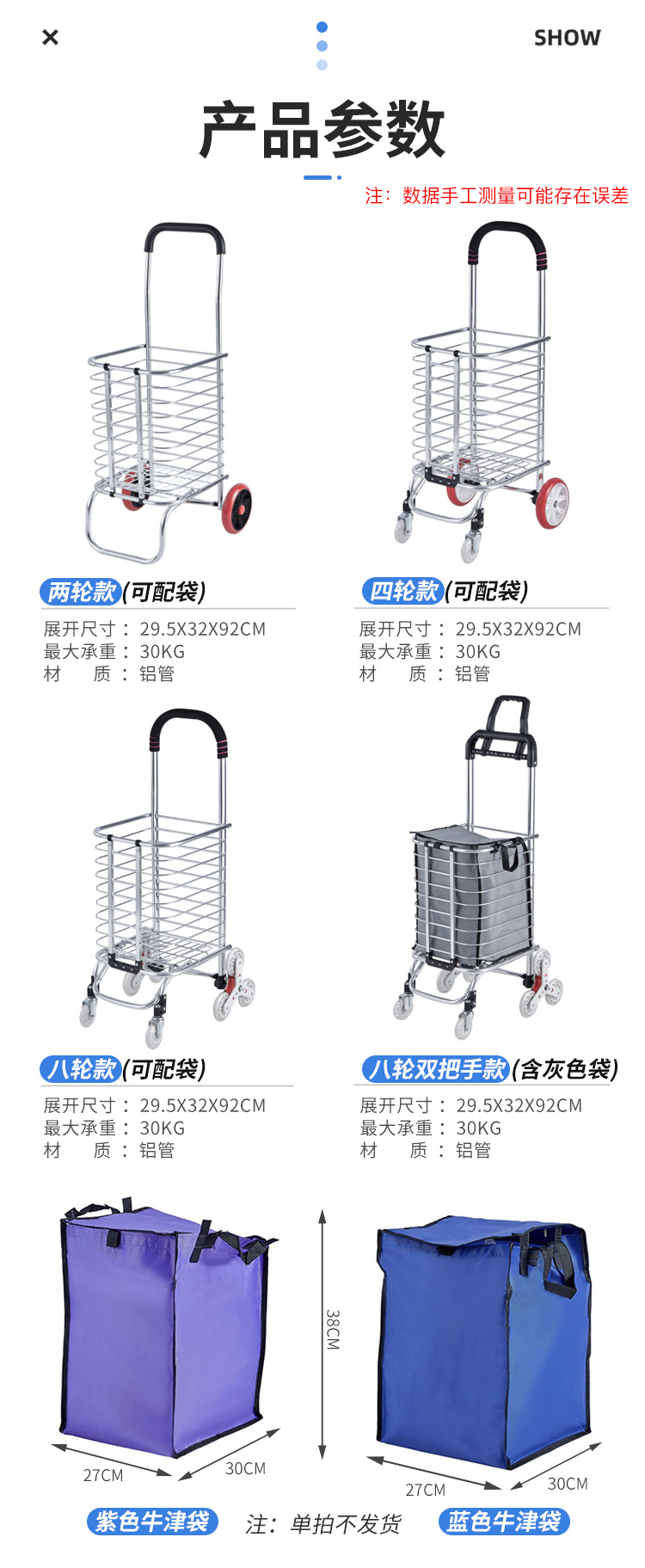 冰禹 购物车买菜车 BYA-216 铝合金 两轮款(不含袋) 1辆