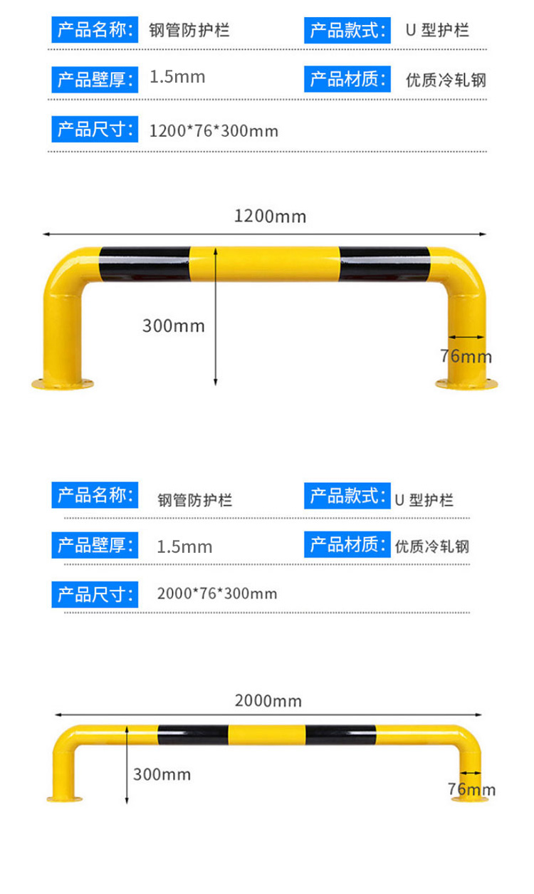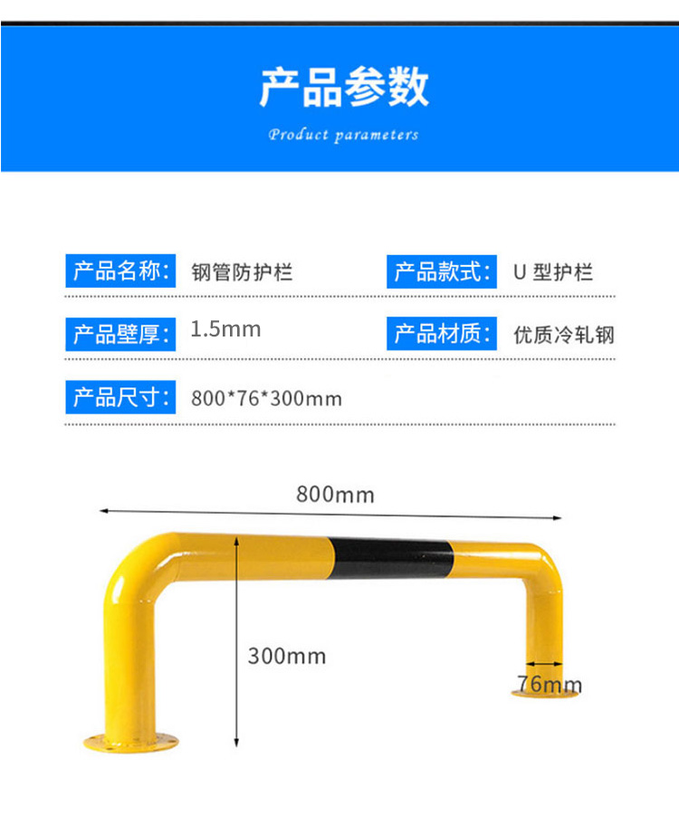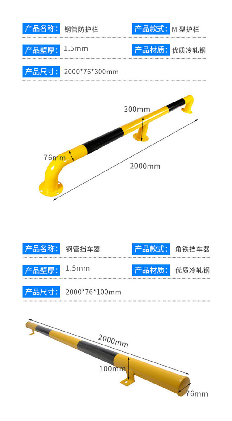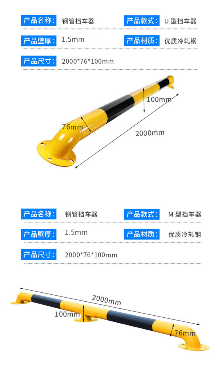 冰禹 停车位钢管挡车器 BYaf-37 冷轧钢 1.5mm厚 M型 长2m高30cm 1个