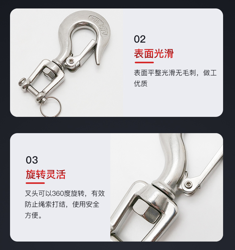 海斯迪克 开口旋转货钩 HKsq-14 114mm 304不锈钢 1个