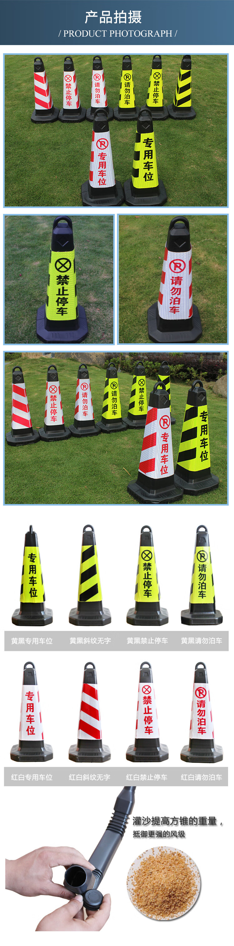 海斯迪克 塑料方锥侧环款 HKQL-33 66.5×31×31cm 黄黑 禁止停车 1个