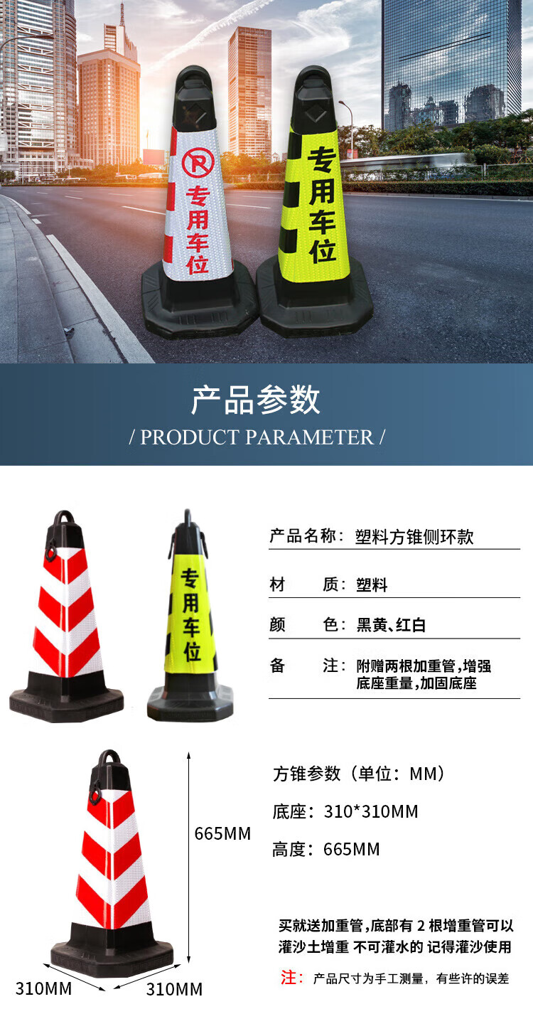 首页>安防用品>安全器具>道路安全>路锥及附件>海斯迪克 塑料方锥侧环款