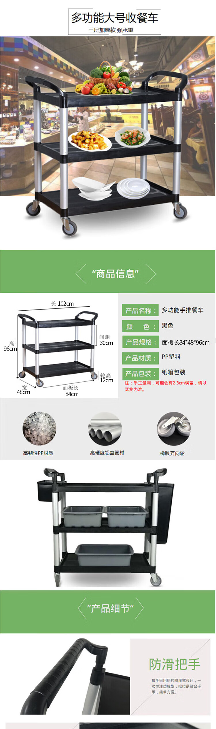 冰禹 清洁车收碗碟车 BY-7073 PP 黑色三层 1个