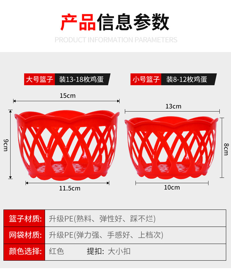 海斯迪克 鸡蛋框塑料篮子 H-112 小号篮子+网+扣 红色 10*8*13cm 100套 1箱