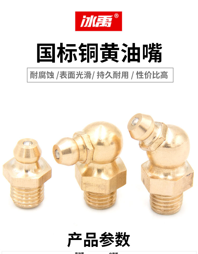 冰禹 国标黄油嘴 BYaf-566 黄铜 M12*1 45° 20个 1件