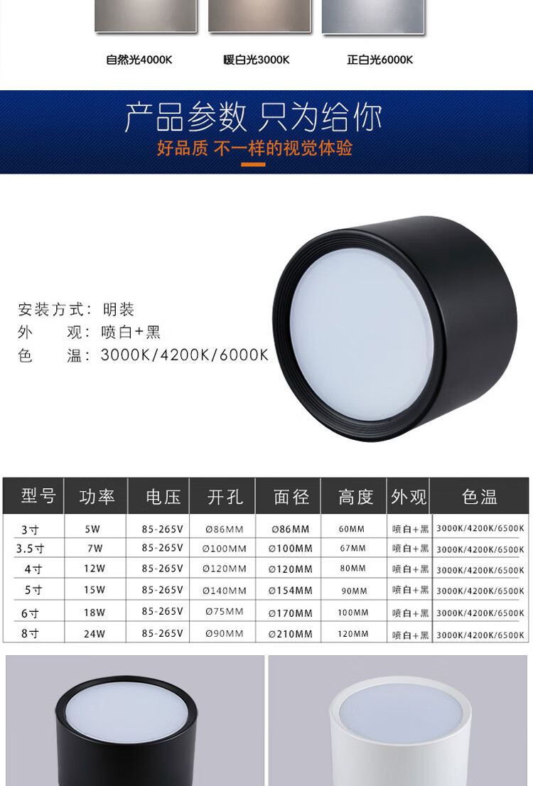 冰禹 LED明装筒灯 BYX-90 铝材 4000K自然光 白色 8寸 24W 1个