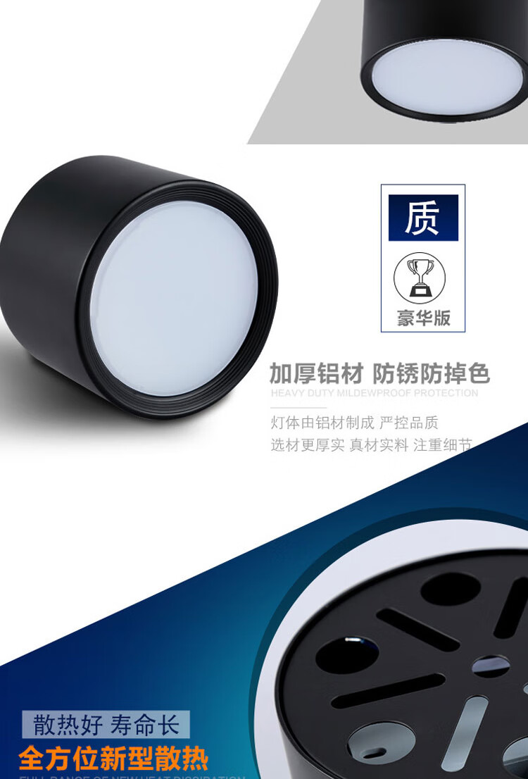 冰禹 LED明装筒灯 BYX-90 铝材 3000K暖白光 白色 6寸 18W 1个