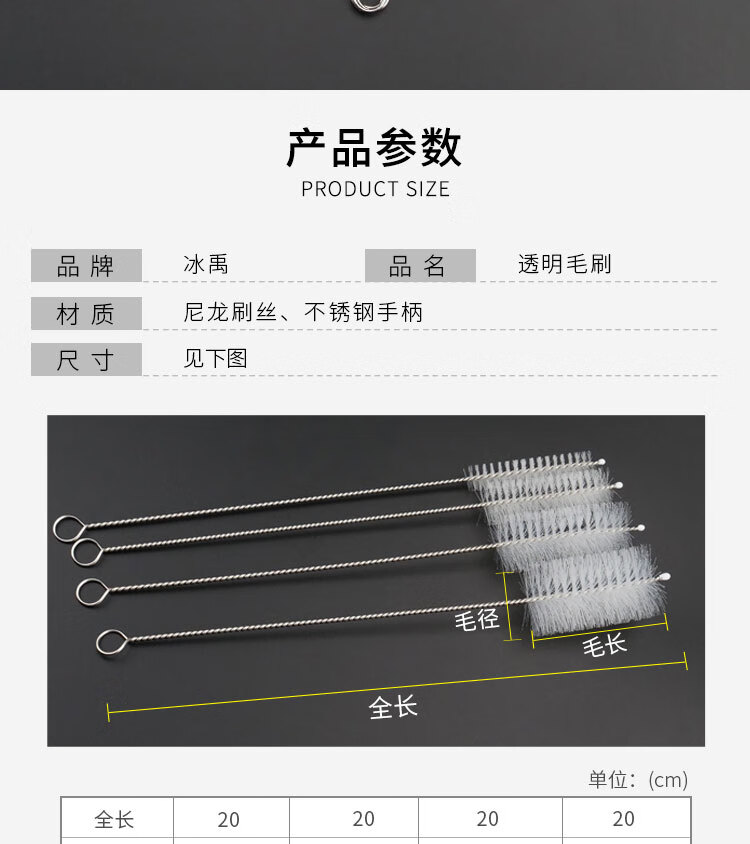 冰禹 试管刷 BYA-04 尼龙丝不锈钢柄 全长20*毛长5*毛径2 1把