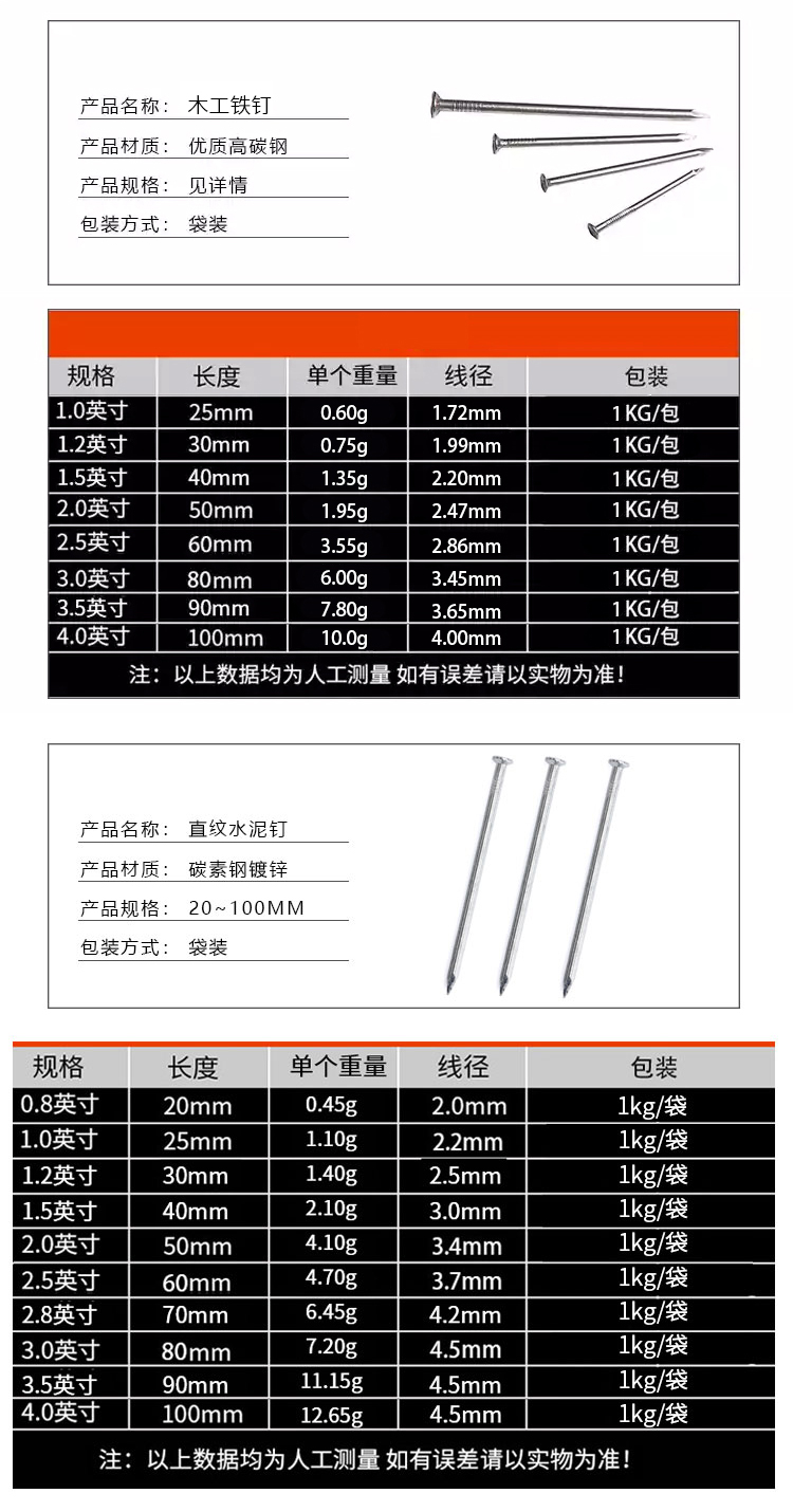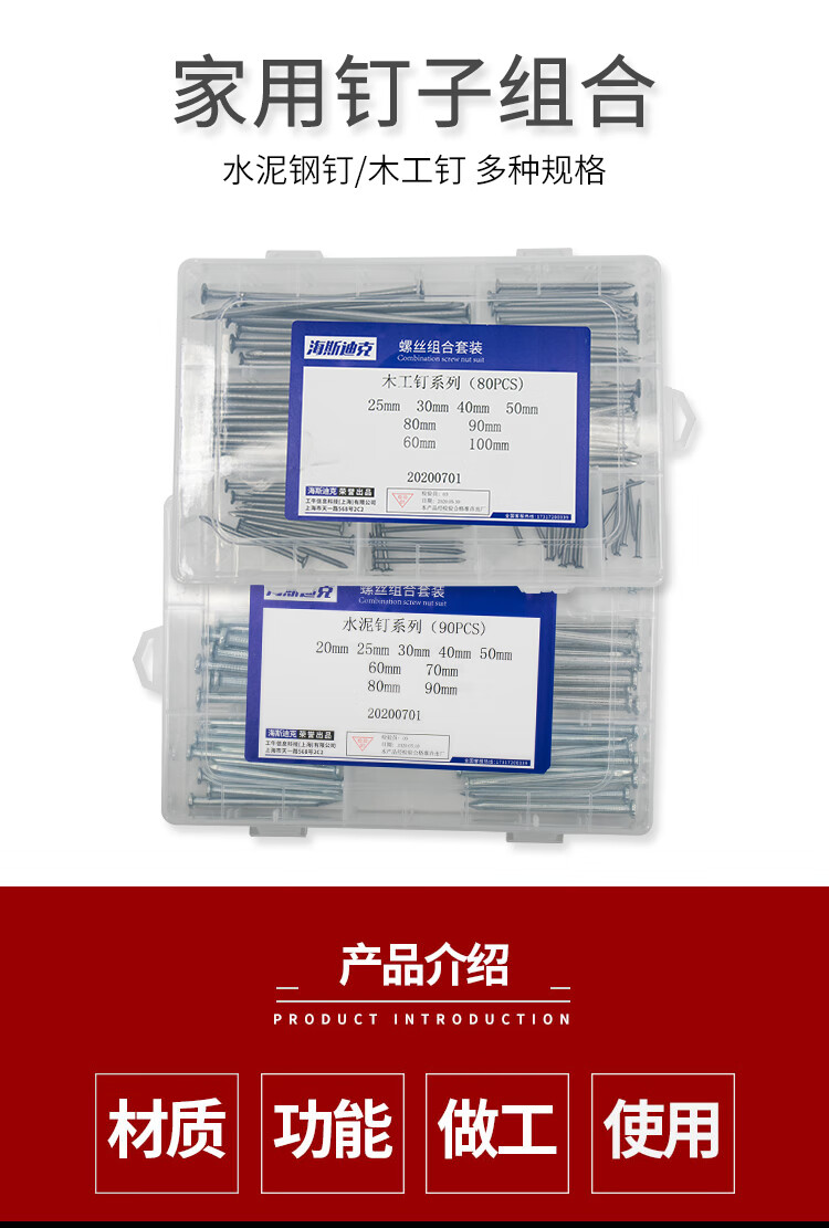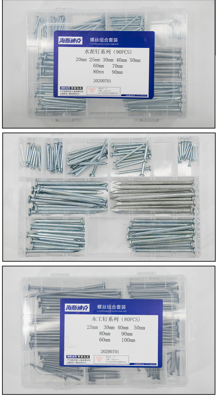 海斯迪克 木工铁钉 HKZ-157 80PCS组合装 1盒