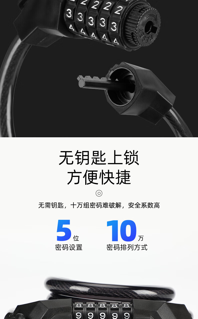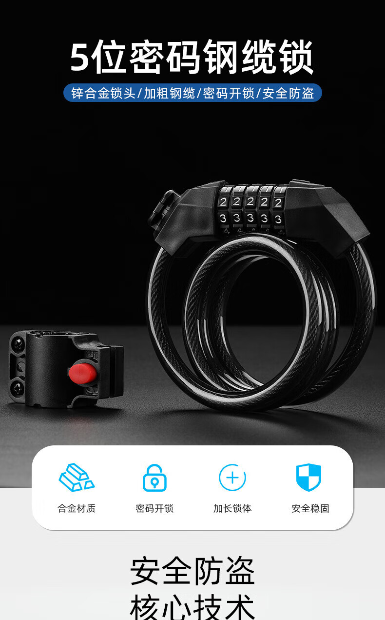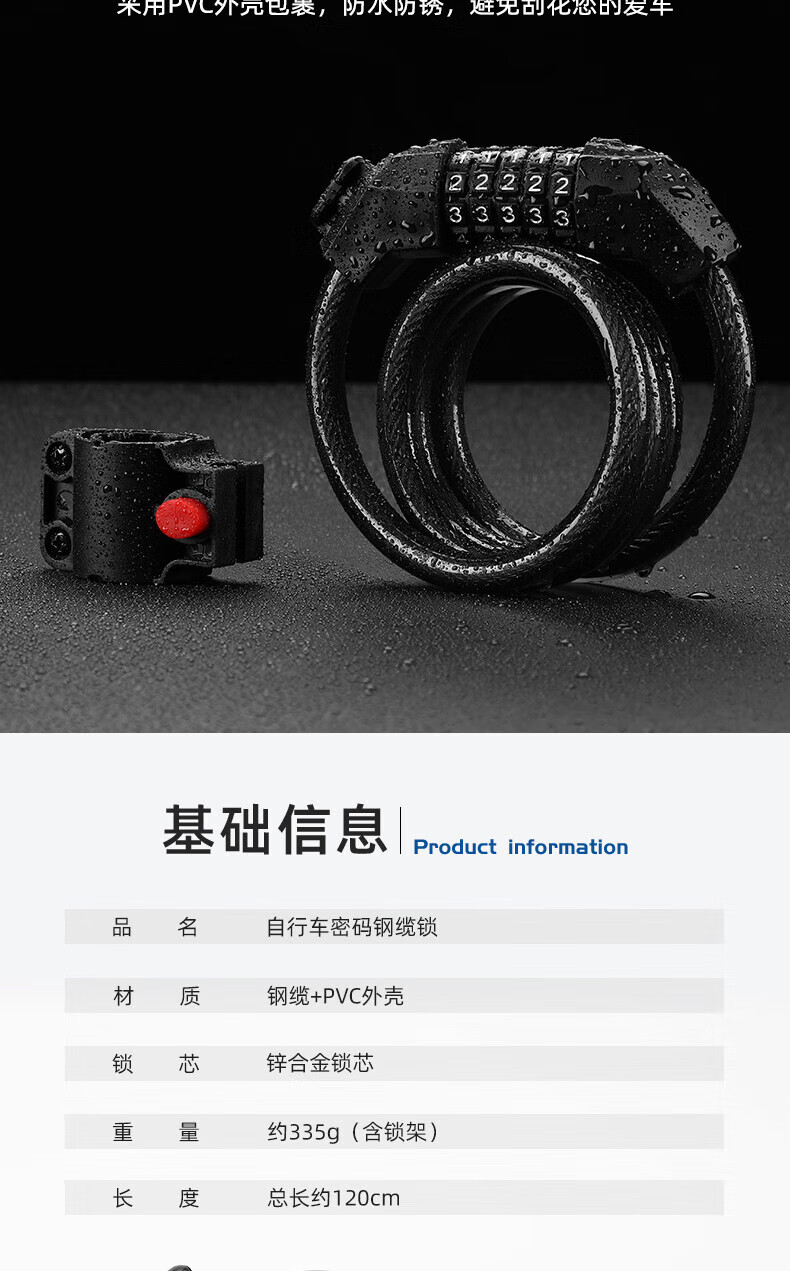 海斯迪克 自行车锁 HKsq-335 防水密码锁 1个