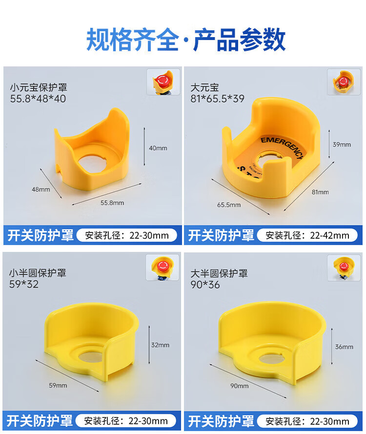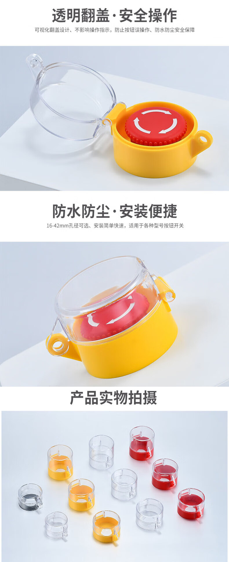 海斯迪克 急停开关防护座 HKsq-468 55.8*48*40mm小元宝(黄色带警示贴)22mm孔径 1个