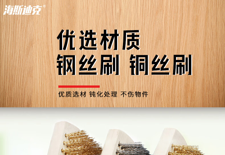 海斯迪克 木柄铜丝刷 HZL-269 铜丝刷 210*25*8mm 1把