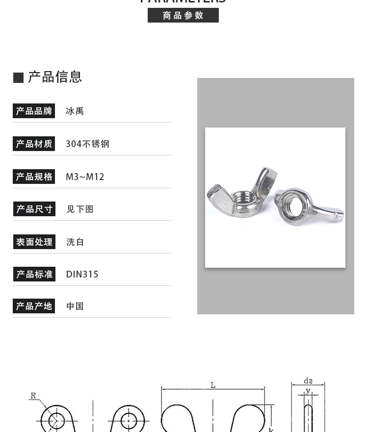冰禹 盖形螺母 BY-519 304不锈钢 洗白 DIN315 M4 70个 1包
