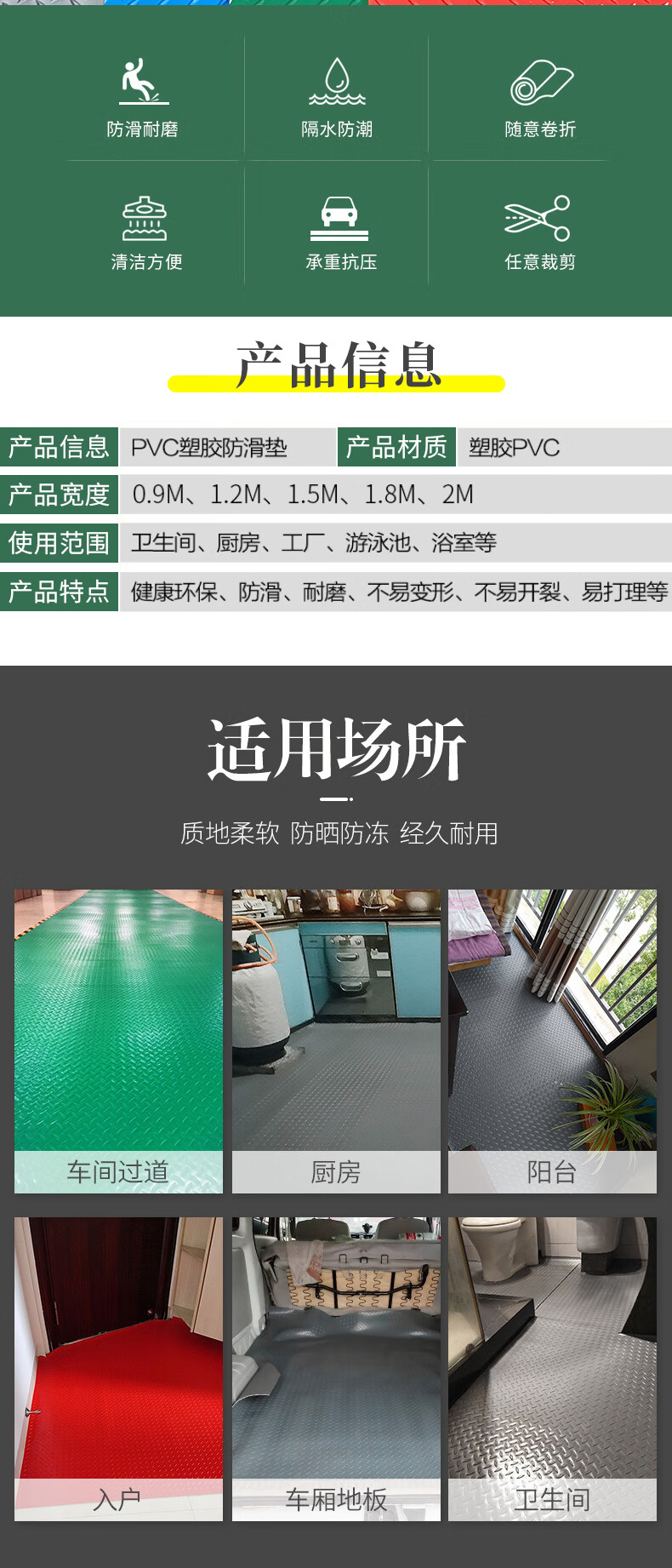 冰禹 防水防滑地垫 BY-8030 PVC 灰色人字 1.3*1米 1米
