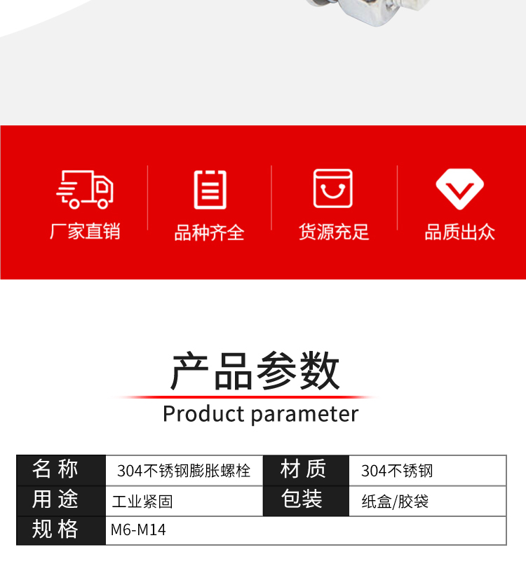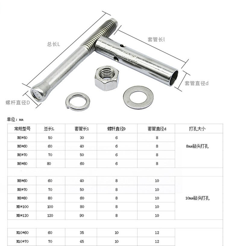 冰禹 膨胀螺丝 BY-656 304不锈钢 M6*70 50个 1包
