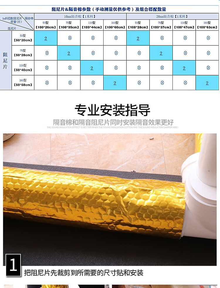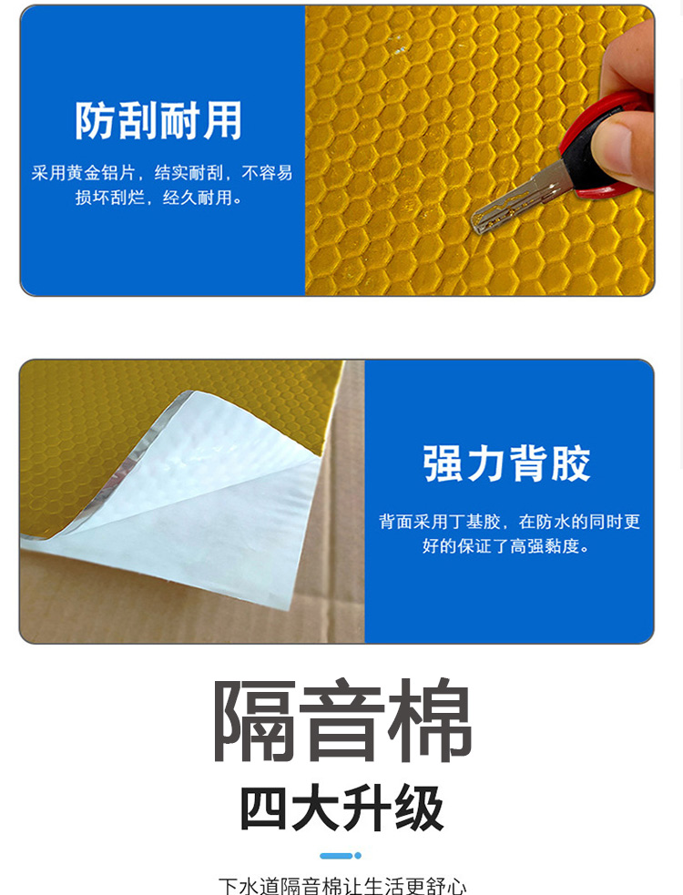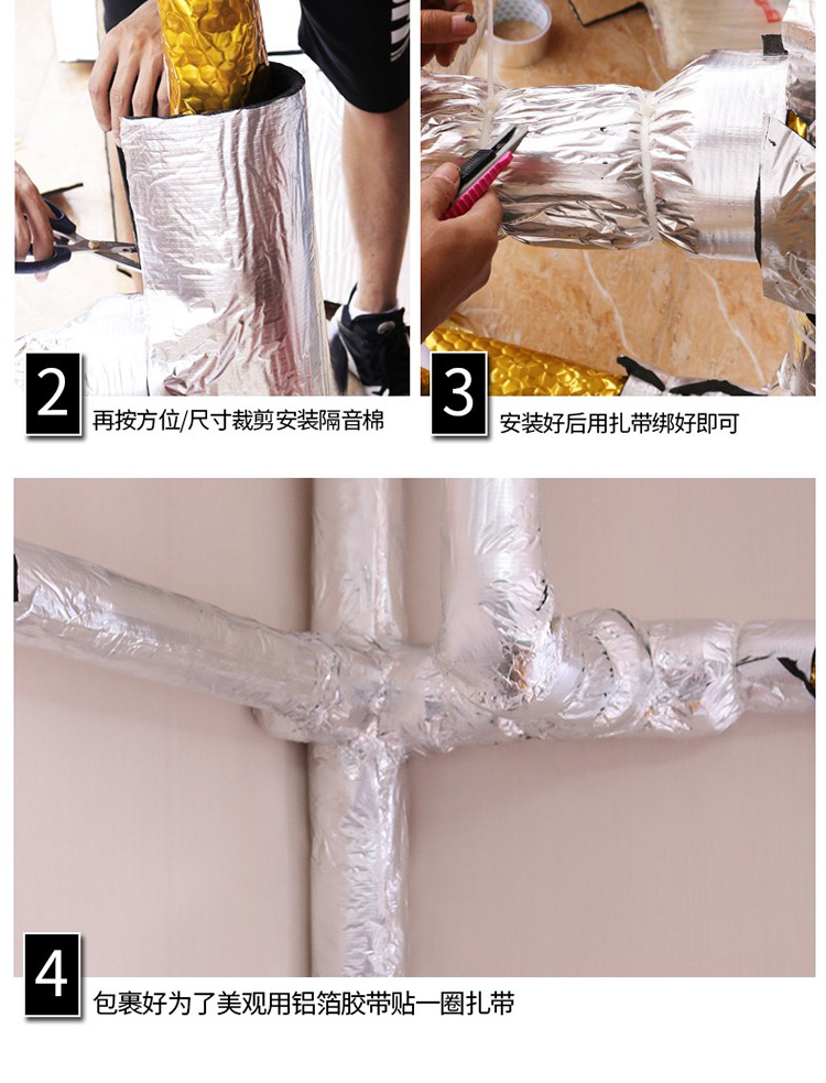 冰禹 下水管道隔音棉 BYzx-31 铝箔 20mm隔音棉+阻尼片75型 1m+送4根扎带 1套