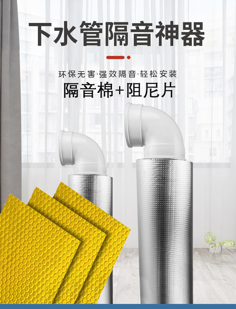 冰禹 下水管道隔音棉 BYzx-31 铝箔 10mm隔音棉+阻尼片160型 1m+送4根扎带 1套