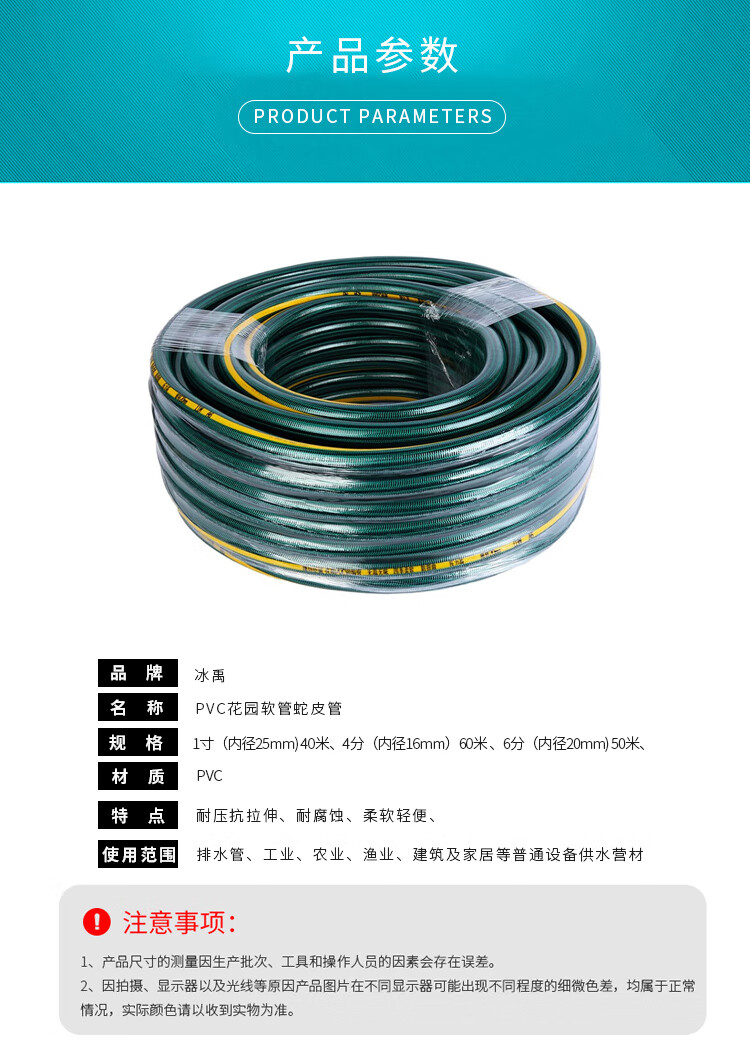 冰禹 塑胶耐磨蛇皮软管 BYrl-138 PVC 绿色 6分(内径20mm)50米 1卷