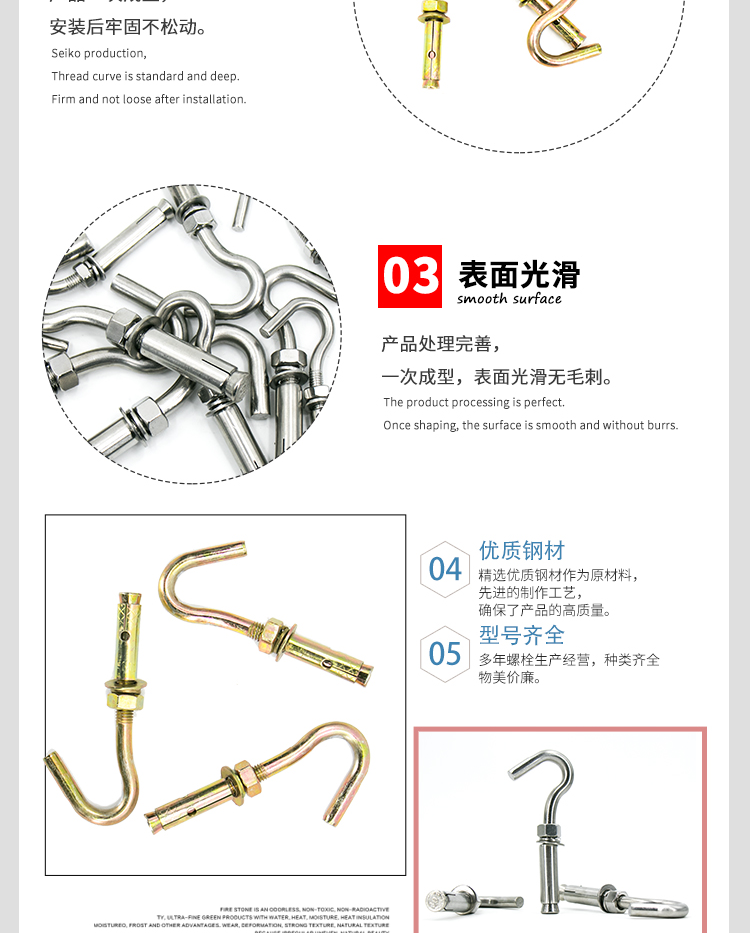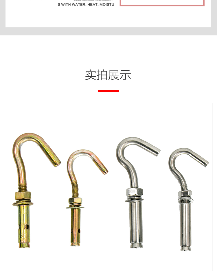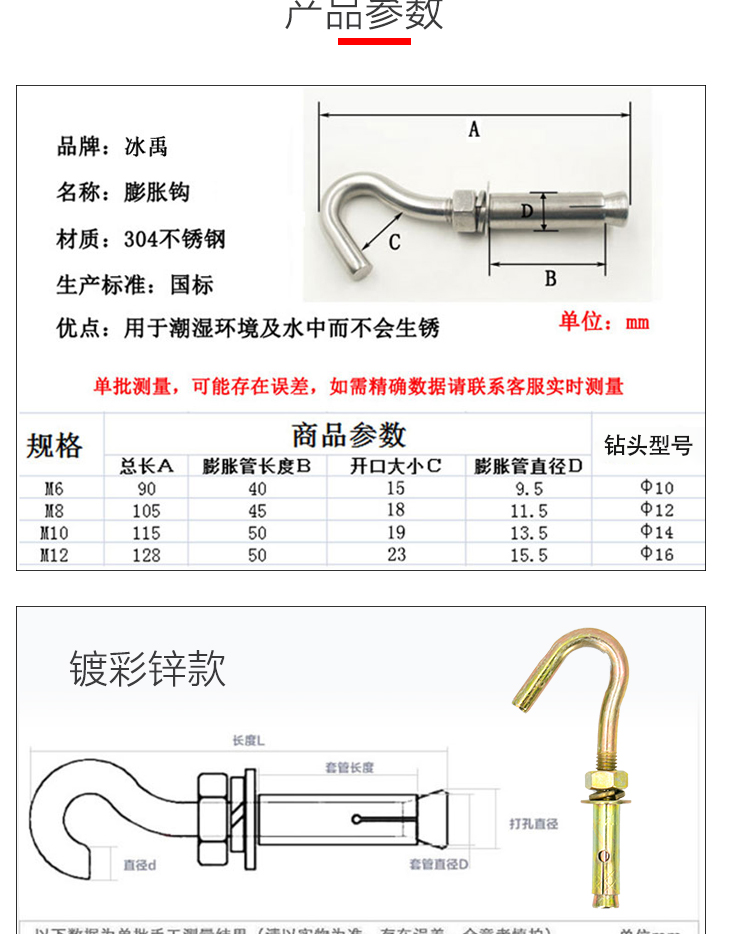 冰禹 膨胀钩 BYsy-12 304不锈钢 本色 国标 M6 10个 1包