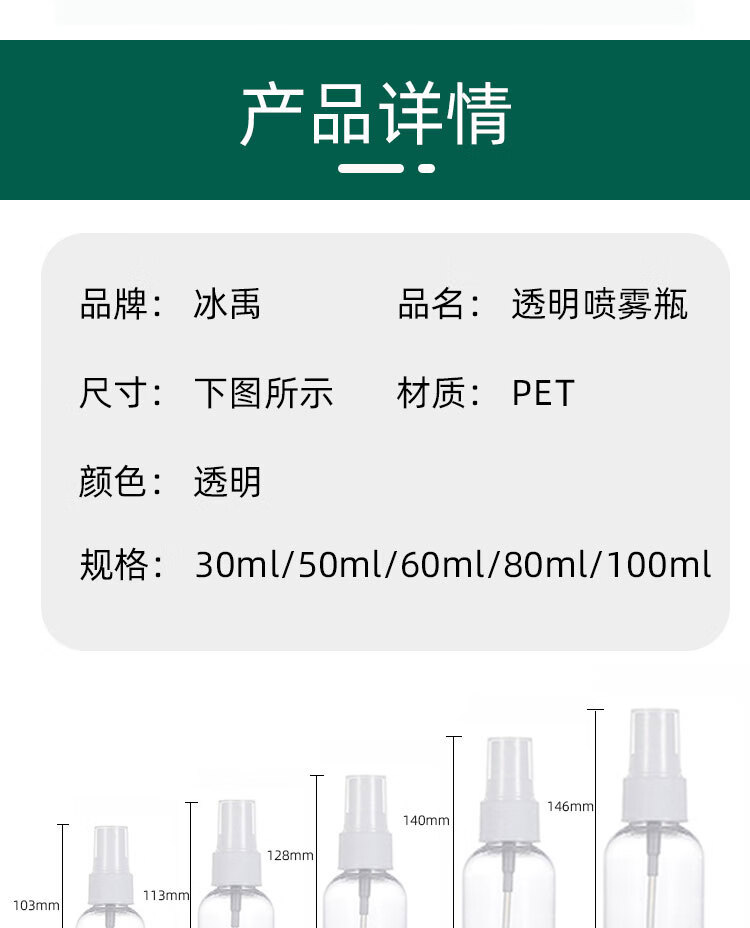 冰禹 塑料喷瓶 BYyc-271 PET 透明 100ml 10个 1包
