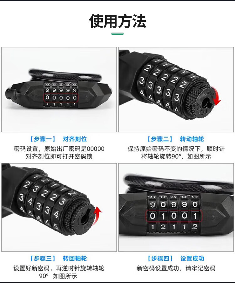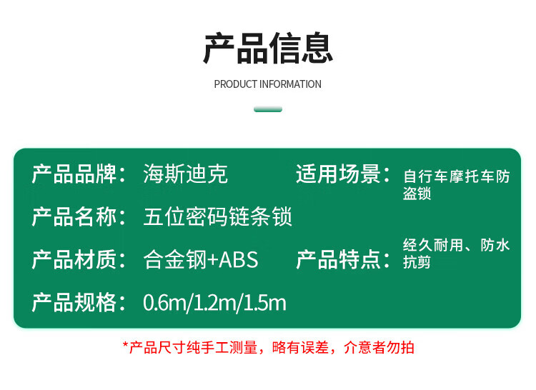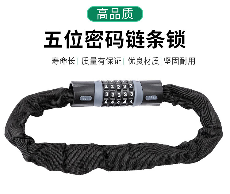 海斯迪克 五位密码链条锁 HKsq-305 黑灰直头0.9m 1把