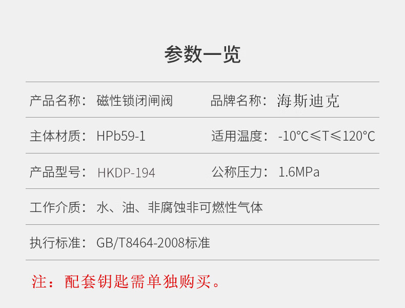 海斯迪克 黄铜锻压磁性锁闭闸阀 HKDP-194 HPb-59-1 DN40 1个