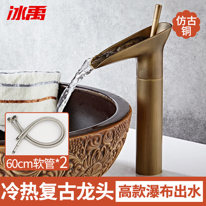 冰禹 冷热水龙头套装 BYQ-947 高款仿古 酒杯型 60cm软管×2 1套