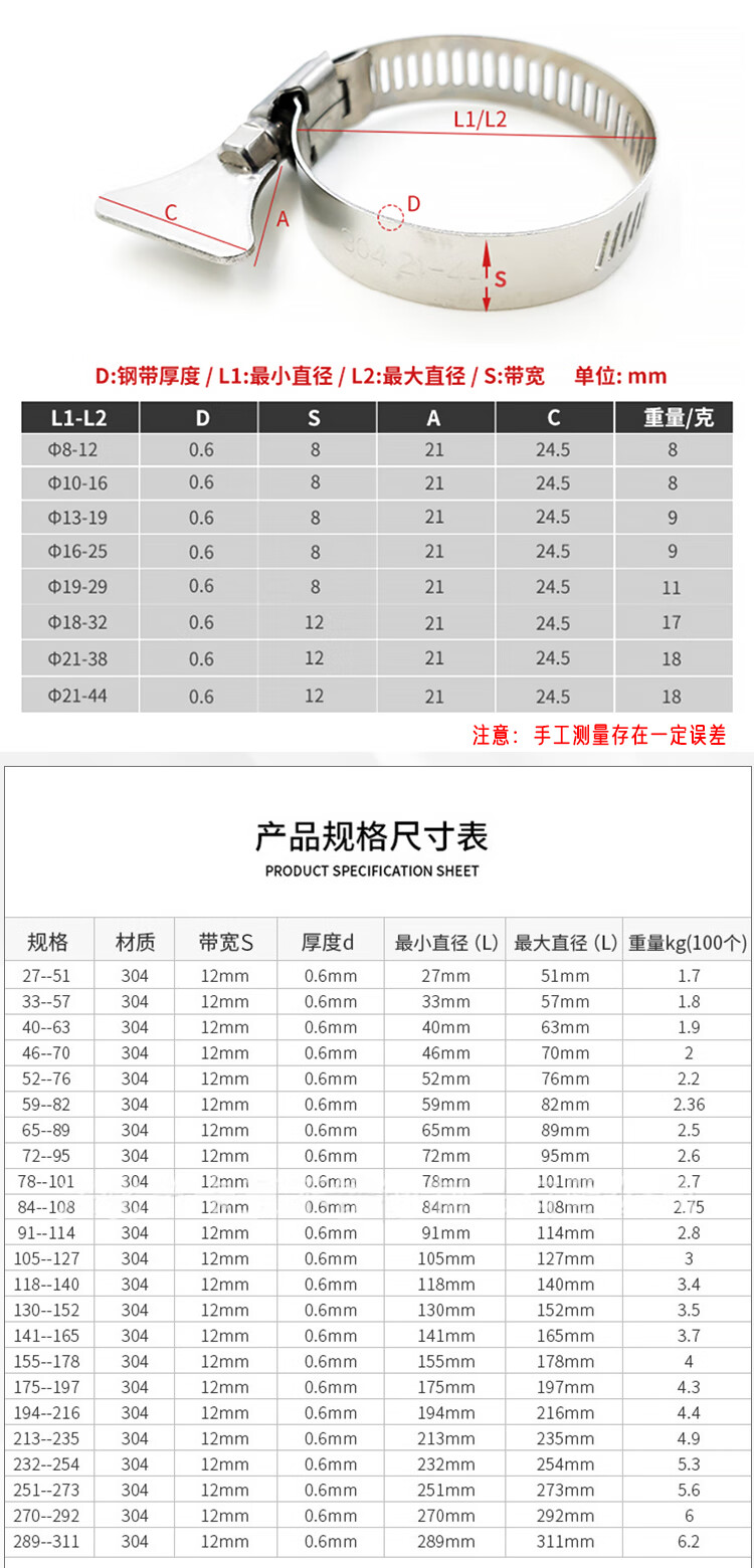 - 304不锈钢美式带手柄喉箍