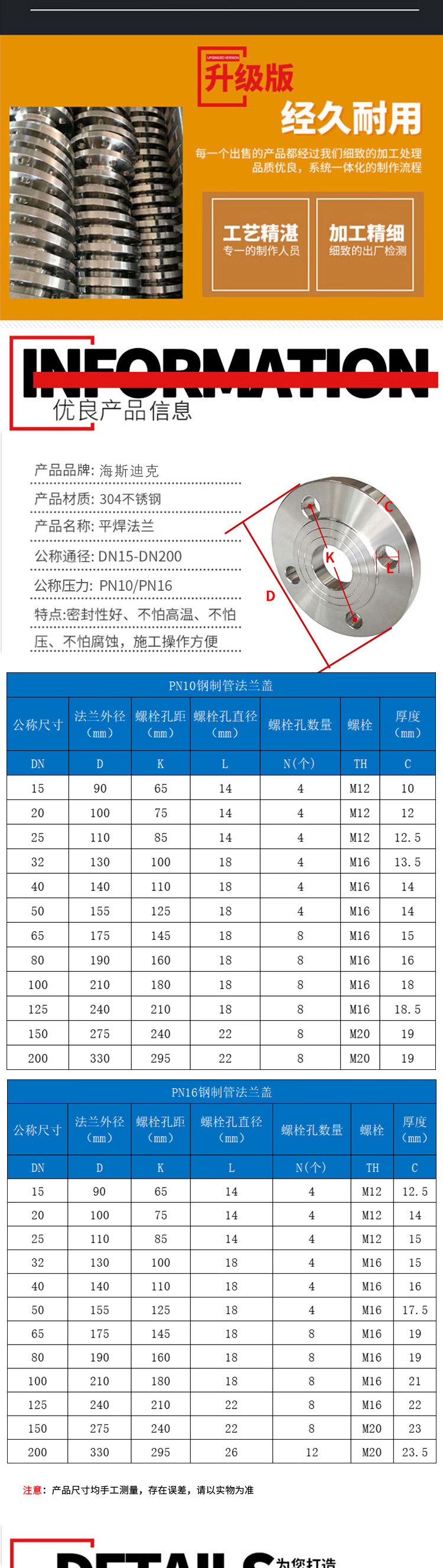 海斯迪克 平焊法兰片 法兰盘 HKT-91 304不锈钢 DN80 PN16 8孔 1个