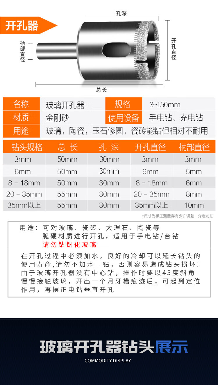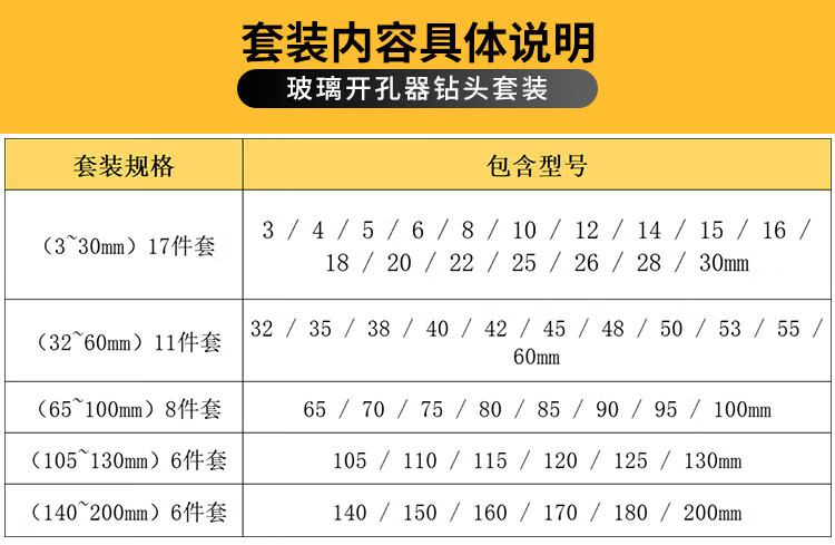 海斯迪克 玻璃开孔器钻头 HKsq-498 (32~60mm) 11件 1套