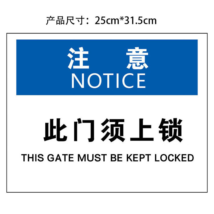海斯迪克 警告标志 gnjz-1344 亚克力UV 注意-此门须上锁 25*31.5cm 2个 1件