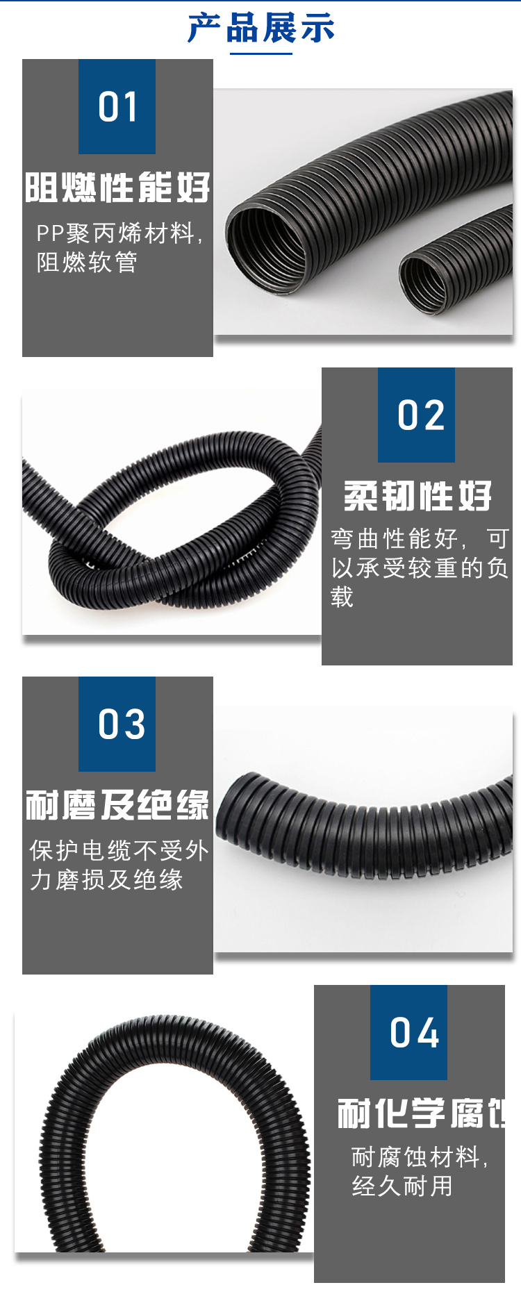 冰禹 阻燃塑料波纹管 BYQ-700 PP 黑色 100m 10mm AD13 100m 1卷