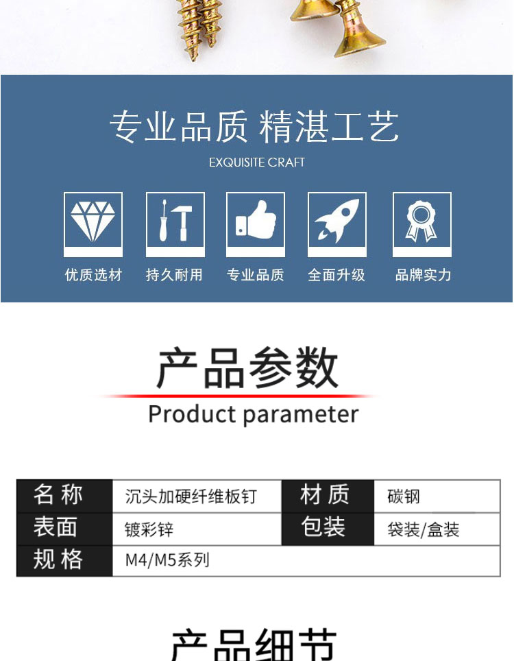 冰禹 沉头十字纤维板钉 BY-385 4*25 镀彩锌 100个 1包