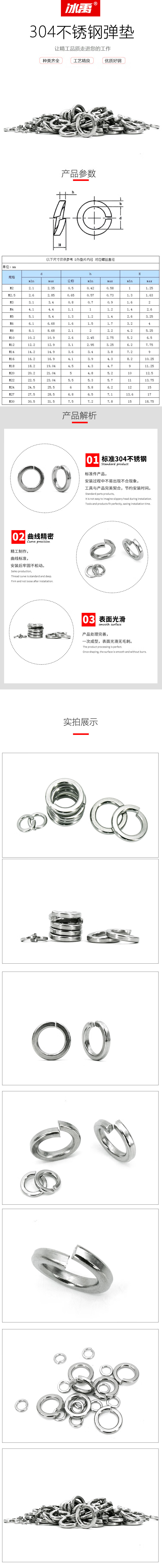 冰禹 弹簧垫圈垫片 BYC-553 304不锈钢 GB93 M1.6 1000个 1包
