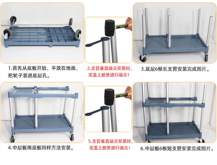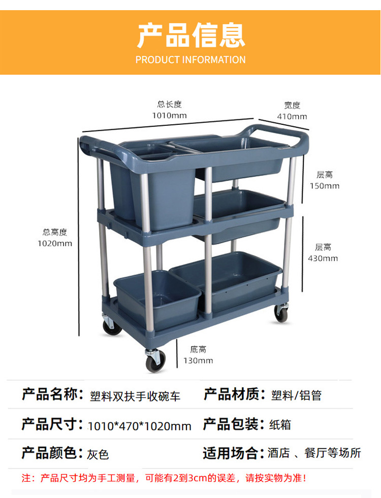 海斯迪克 酒店收碗车 HKCL-357 铝管/塑料 1010*470*1020mm 灰色三层收餐车 1辆