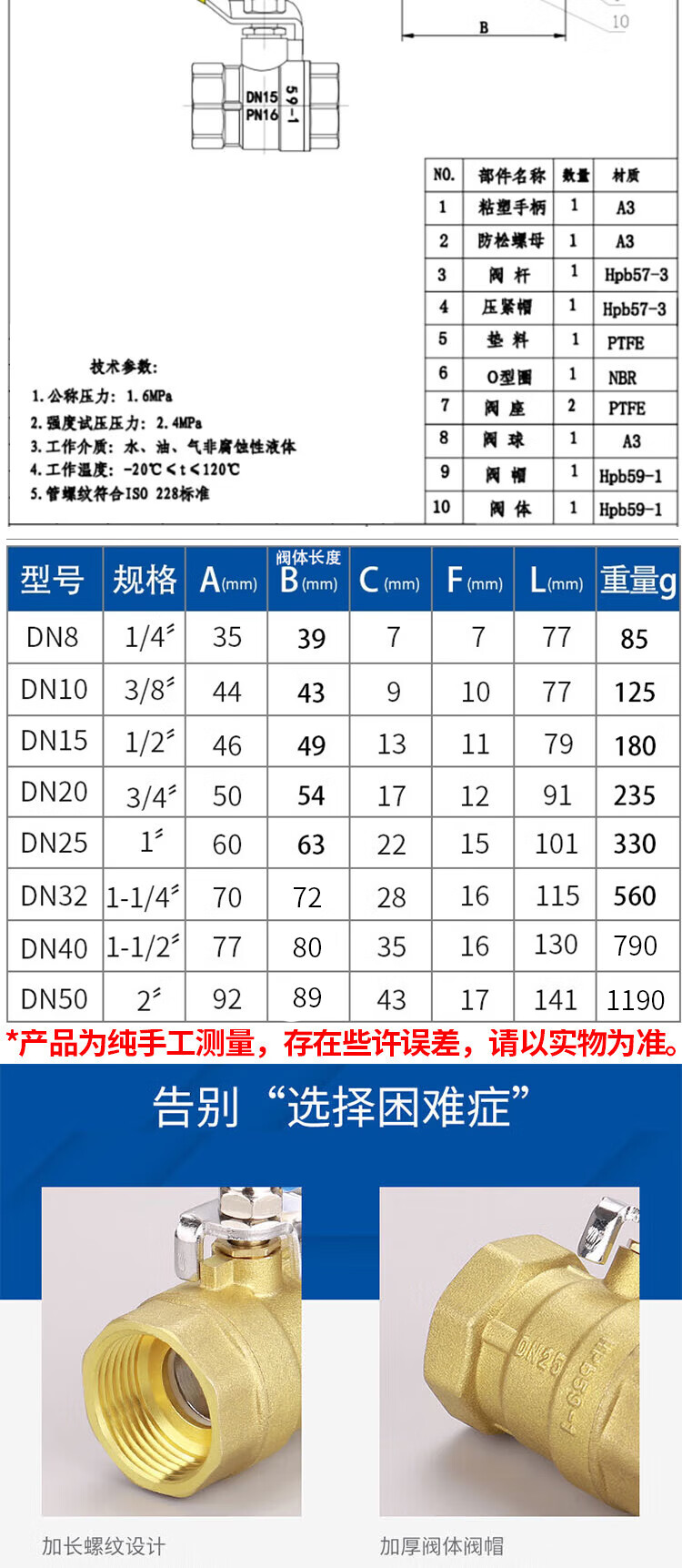 • 商品名称:冰禹 双内丝球阀