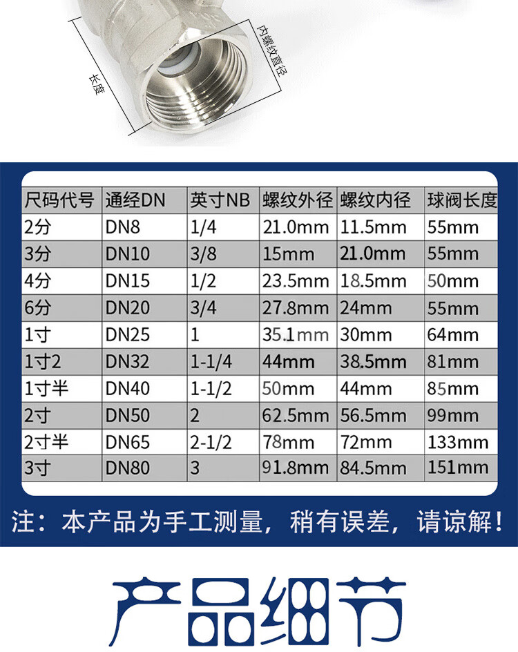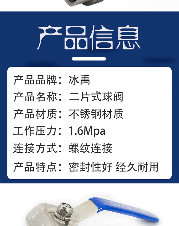 冰禹 全通径球阀 BYQ-101 304不锈钢 手动 内螺纹 1.6MPa 轻型 两片式 DN15 1个