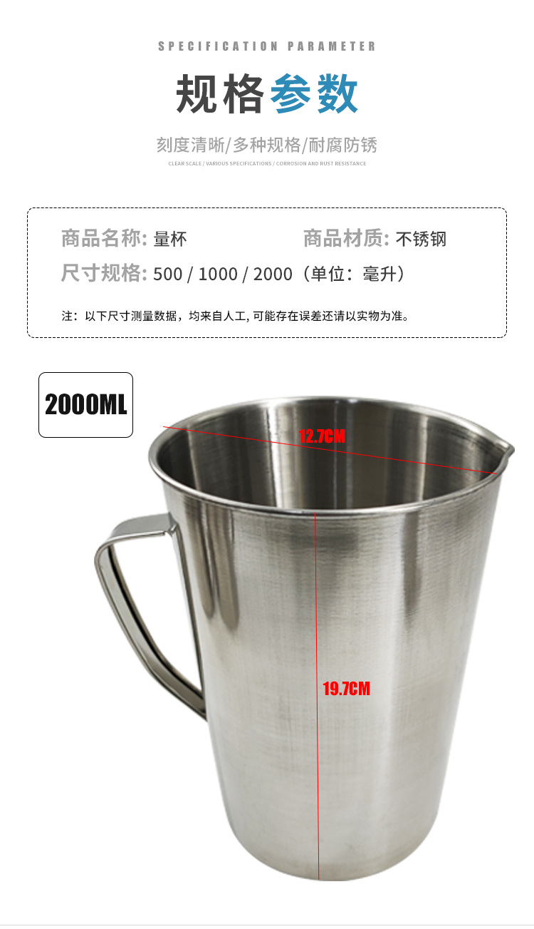 海斯迪克 刻度量杯 HKCC25 不锈钢 500ML 98*105mm 1个