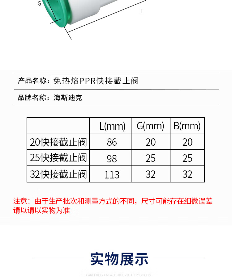 海斯迪克 PPR快接截止阀 HKCL-673 32mm 1个