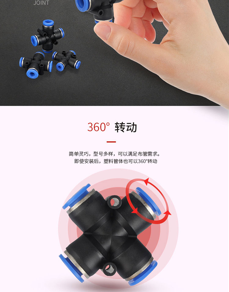 冰禹 PU十字四通接头PZA快插 BYQD-110 PZA-8 1个