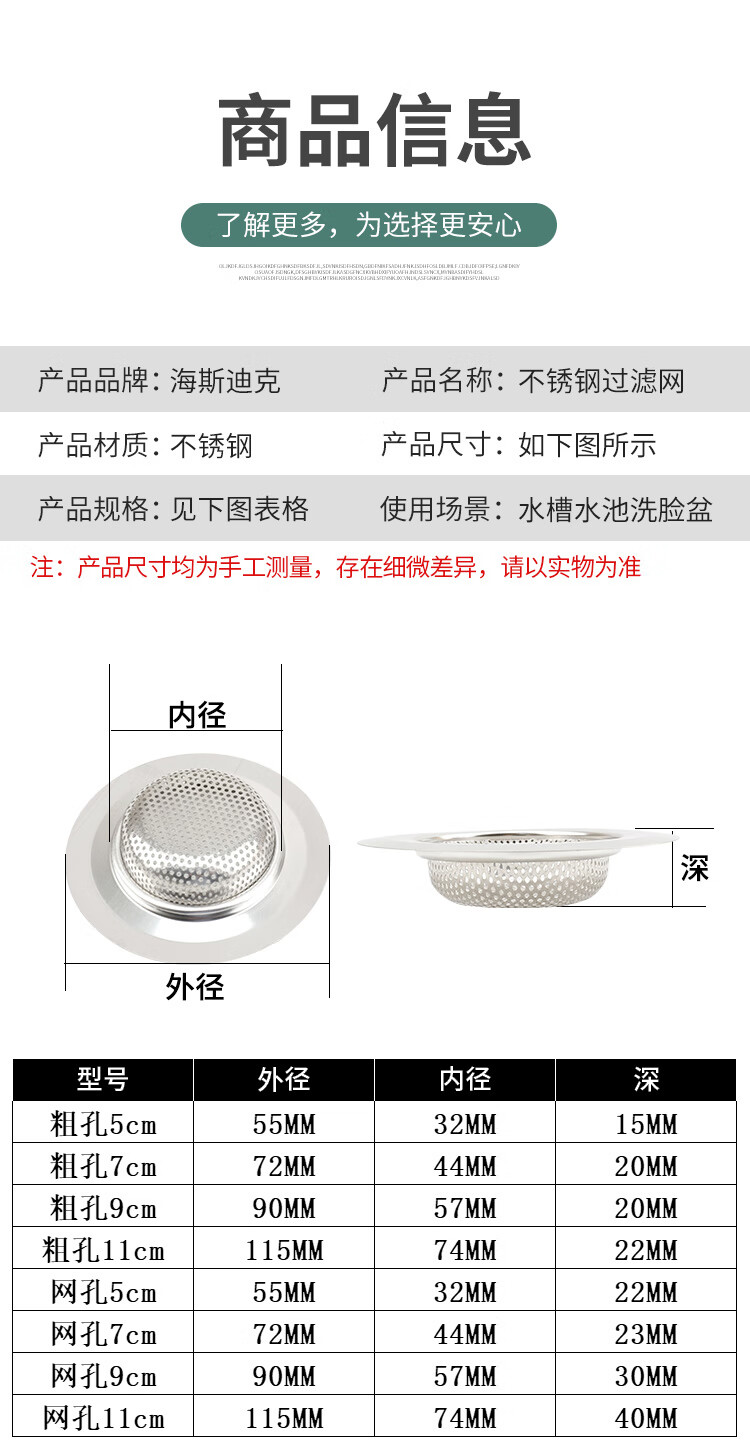 海斯迪克 水槽过滤网 HZL-63 网孔11cm 1个
