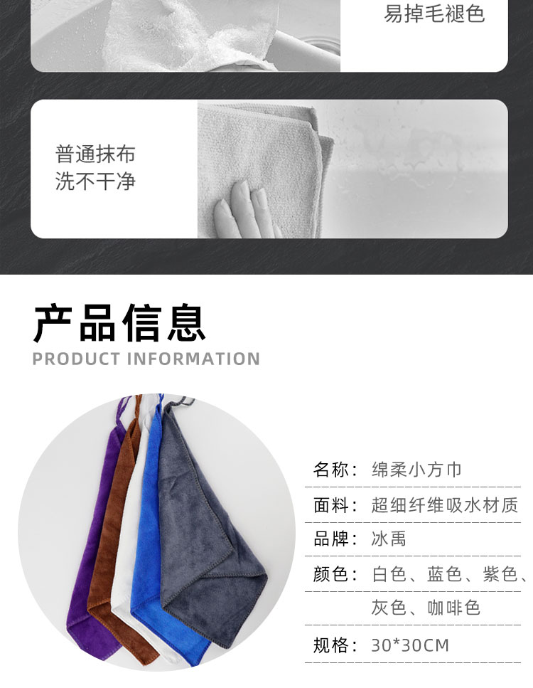 冰禹 多功能细纤维吸水毛巾 BYX-202 灰色 小号 30*30cm 10条 1件