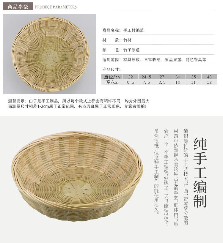 冰禹 竹编织篮 BYA-34 直径35cm 1个
