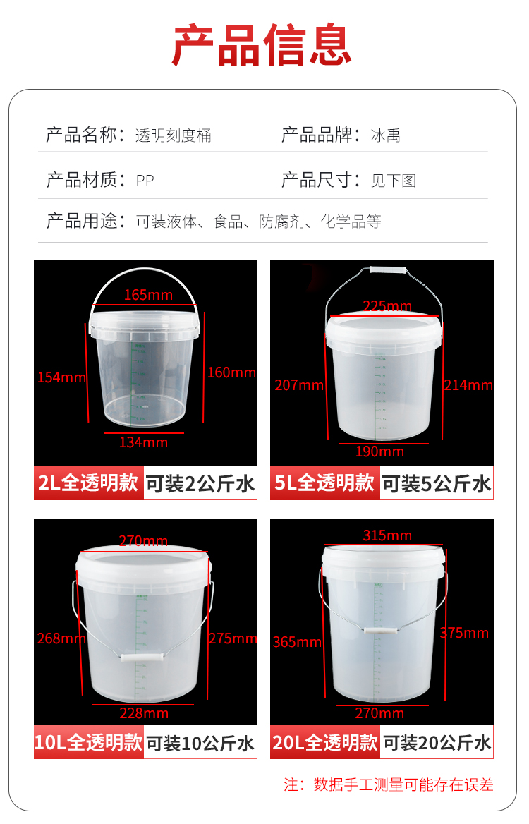 冰禹 透明带刻度桶 BYA-375 PP 5L 1个