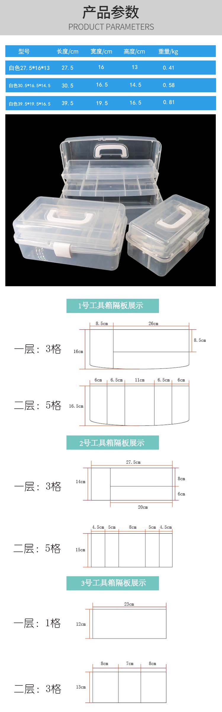 冰禹 手提三层多功能收纳盒 BYA-506 白色 27.5×16×13cm 1个