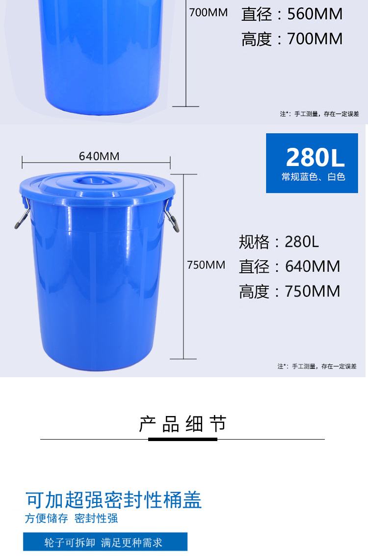 冰禹 塑料桶储水桶 bf-119 蓝色带盖 280L 1个