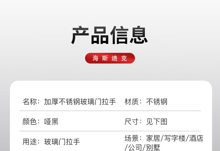 海斯迪克 玻璃门拉手 gnxy-170 不锈钢 哑黑配扳手38管 总长600mm 孔距400mm 1件