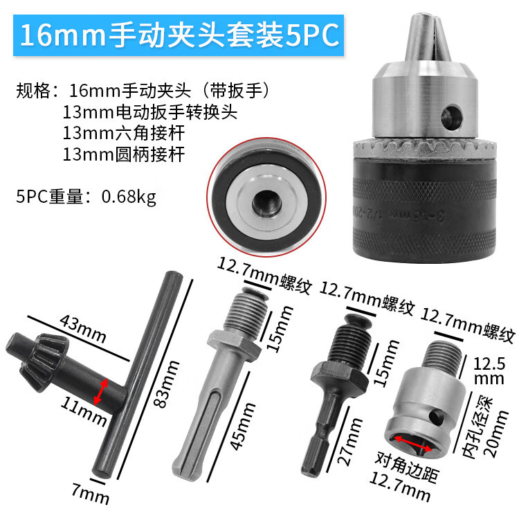 海斯迪克 电钻转换夹头 gnjz-853 13mm自动夹头套装4PC 4件 1套