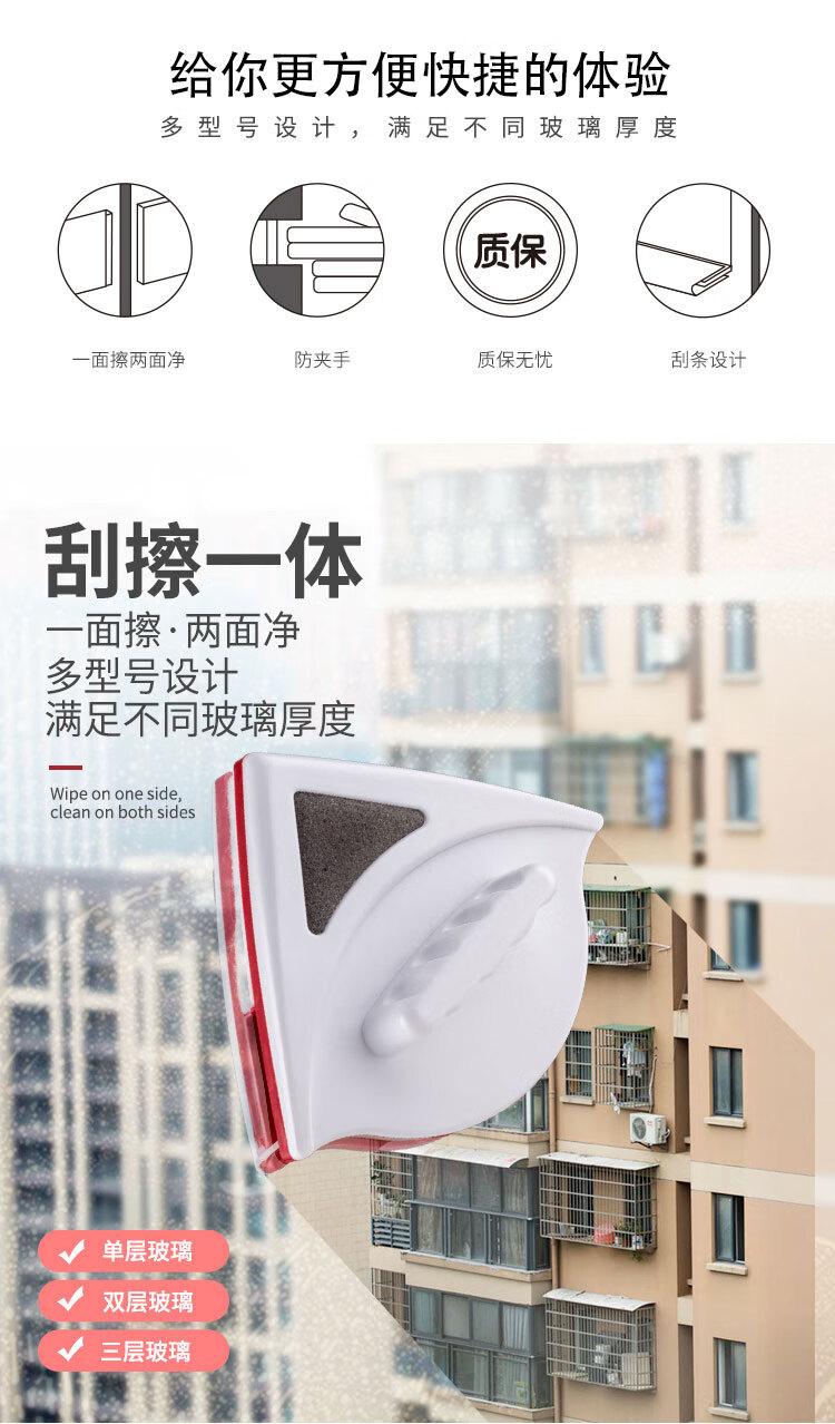 海斯迪克 高楼擦窗器 gnjz-213 15-24mm 普通双层玻璃 1个