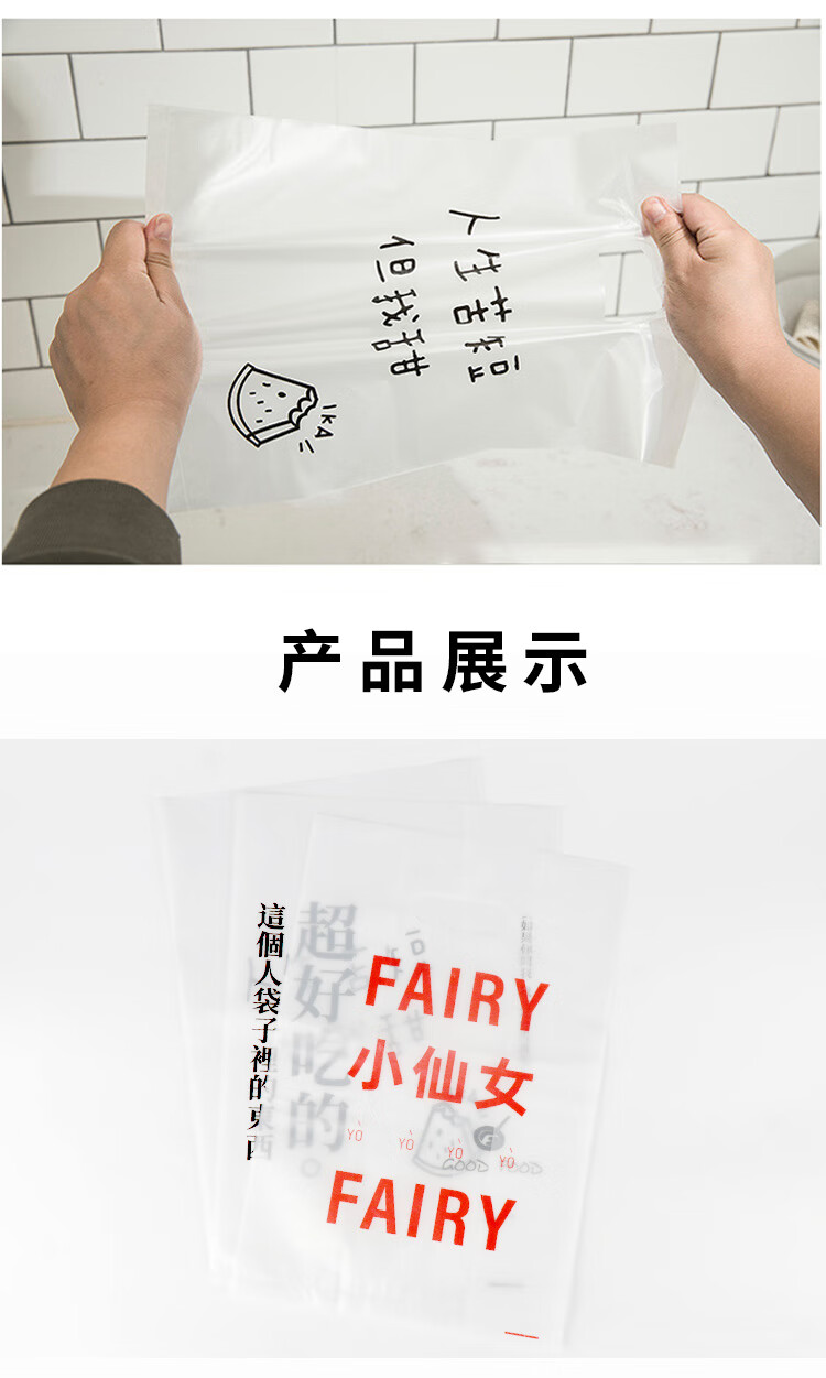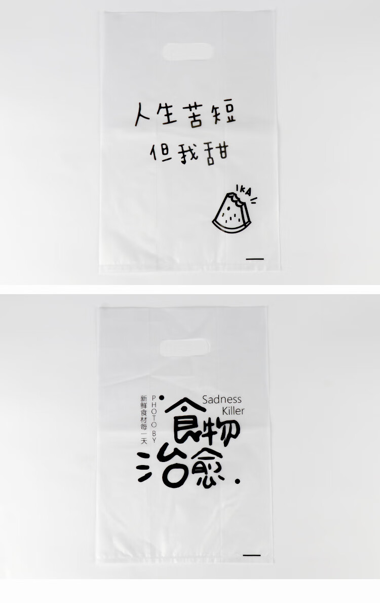 冰禹 塑料手提打包袋 BYcc-86 双面8丝 食物治愈(小号) 50个 1包