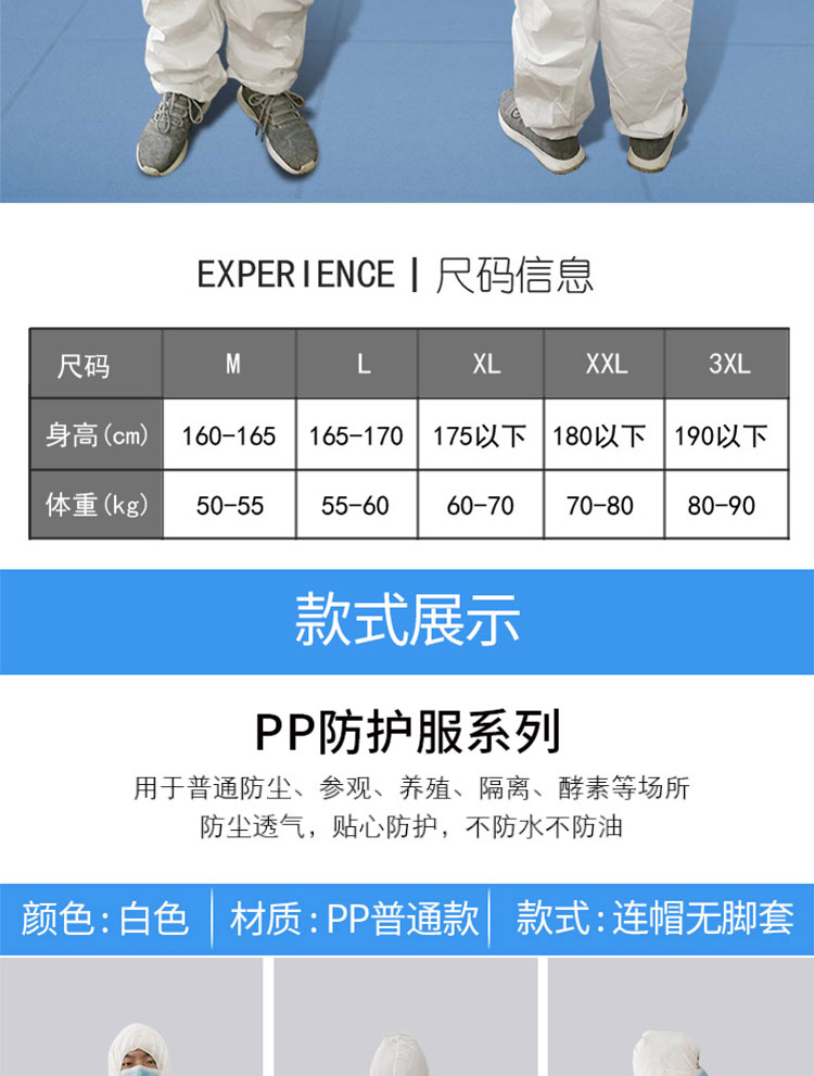 冰禹 一次性带帽连体防护工作服 BYA-174 PP 白色 XXXL码 1件